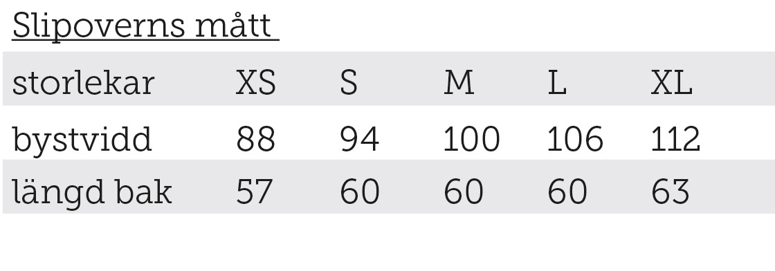 Mått Slipover Tukk, Akka i cm